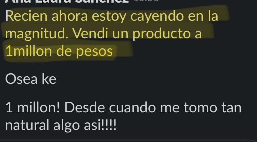 El crecimiento real se mide en resultados, como buena "casi" farmacéutica y bioquímica soy una amante de las pruebas. Mi frase de cabecera es "a las pruebas me remito" y si te digo algo siempre me gusta acompañarlo con capturas reales que reflejan las palabras exactas de mis clientas (que podrían ser las tuyas), al fin y al cabo: una imagen vale más que mil palabras.